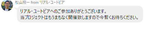 結果として、リアル・ユートピアの主催者である「松岡翔一」からメッセージを受け取ることができるようになりましたが、どうやらまだプロジェクトは開催されていないようです。