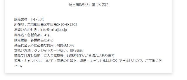 さらに、特商法による必要事項の中には、返品・交換に関する記載も含まれていますが、ガイ流トレーディングラボの特商法にはこれに関する情報が見当たりません。
