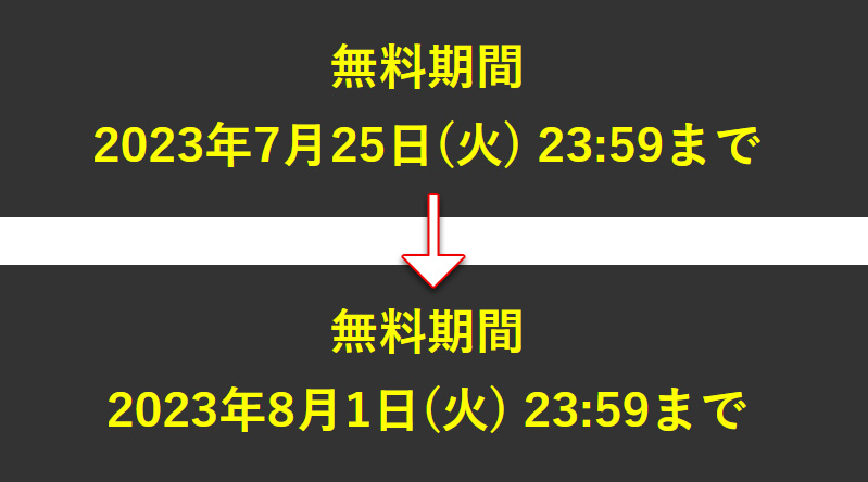 これは無料という言葉を使ってユーザーを急がせるための演出と言えますが、あまり好感が持てません。