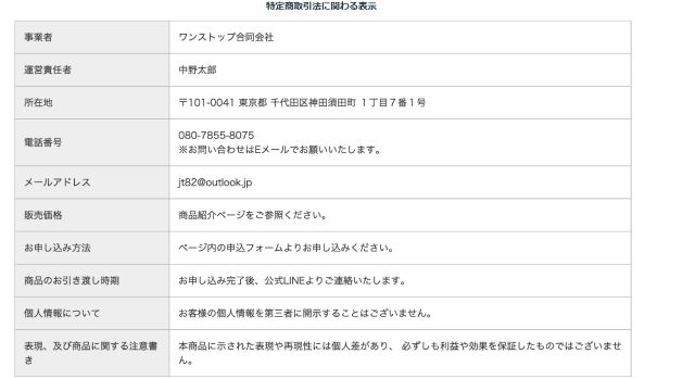 さて、このスマホ物販ビジネスの特定商取引法の表示はどうなっているでしょうか?