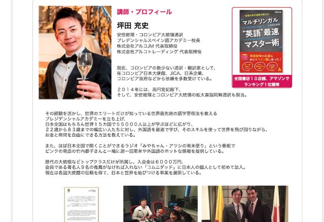 マルチリンガルイングリッシュの講師である坪田充史さんについても調べてみました。