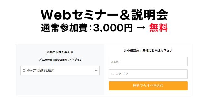 実際に人助けビジネスの始め方に登録してみたところ、すぐにページが切り替わり、「WEBセミナー&説明会」の参加申し込みフォームが表示されました。