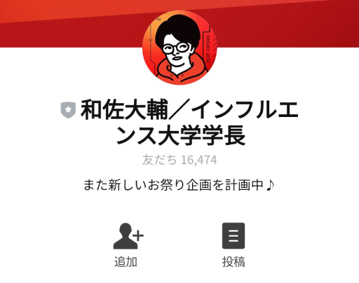 そして、その後に「和佐大輔/インフルエンス大学学長」という人のラインを追加しなければなりません。