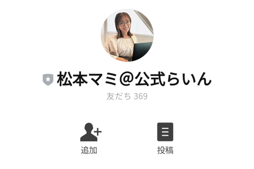 無料で登録して詳細を確認するために、「松本マミ@公式ライン」というアカウントを追加しました。