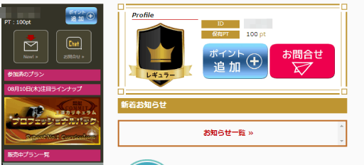 実際に登録したら、上記の画像のようなページに移動し、最初から100ポイントを持つことになります。