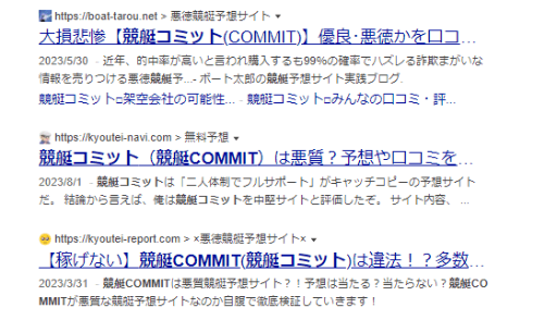 競艇COMMITの評判や口コミを探してみましたが、検索をかけると、いくつかの悪評が見つかりました。