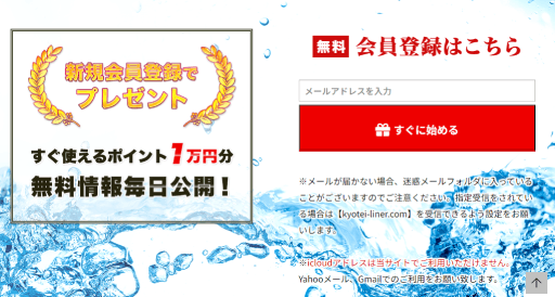 競艇LINERの詳細を確かめるためにメールアドレスを入力して無料会員登録をします。