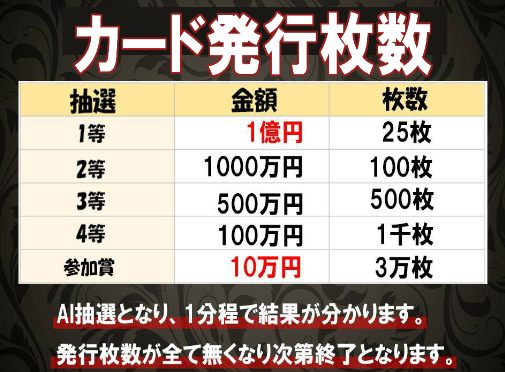 ・先着4,625名限定で、最大1億円のカードが抽選で当たる