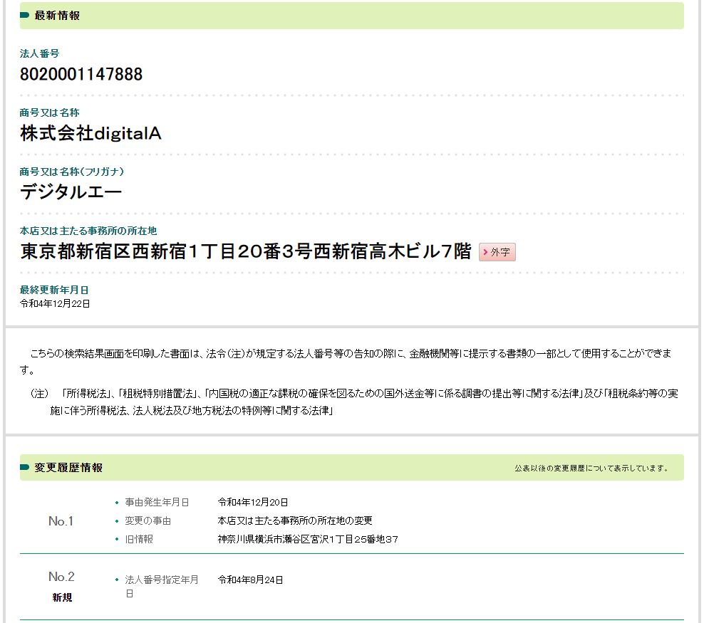 株式会社digitalAが登記を上げていた場所はなんとバーチャルオフィスでした。