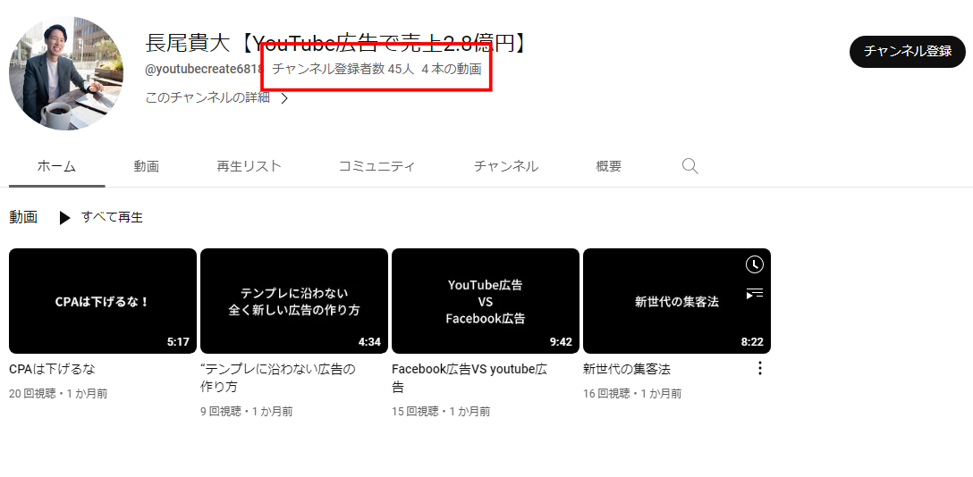 その結果、彼のYoutubeチャンネルを検索してみましたが、登録者数はわずか45人・・・