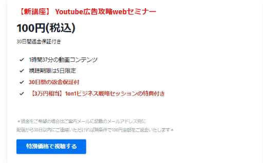 そのため、Youtube広告攻略webセミナーをあまりオススメすることはできません。