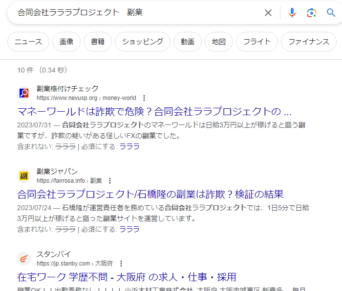 また、「合同会社ララプロジェクト」は以前に「マネーワールド」という情報商材を販売していました。