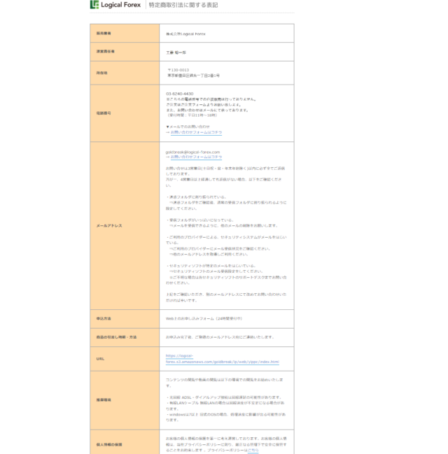 ゴールドブレイクFXを運営する会社は、株式会社Logical Forexという会社だと特商法によって確認できました。