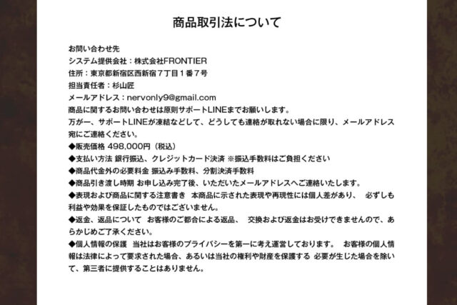 ですので、ハイローハンターの特商法の内容を確認してみましょう。