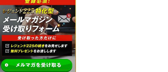 さらに、「専用受付レジェンド225」のLINEを登録する前に既にメールアドレスの登録は済ませているはずであるため、メルマガ登録はすでに完了しているはずです。