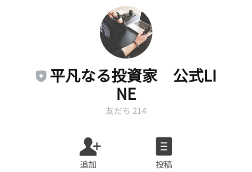 まずは詳細を確認するために、公式LINEアカウント「平凡なる投資家」を追加してみます。